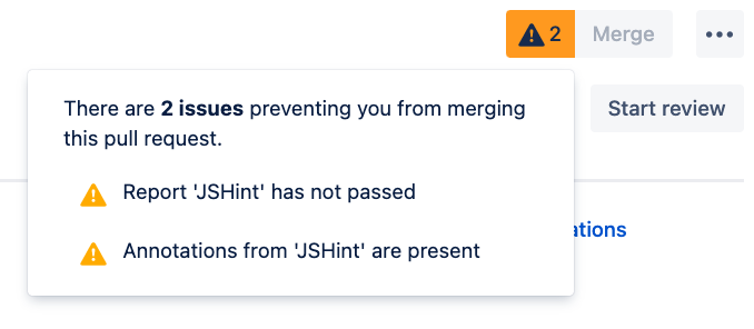 Click Add and the merge check is now been added to the Code Insights report. The Pull Request will be prevented from being merged because of the present annotations.