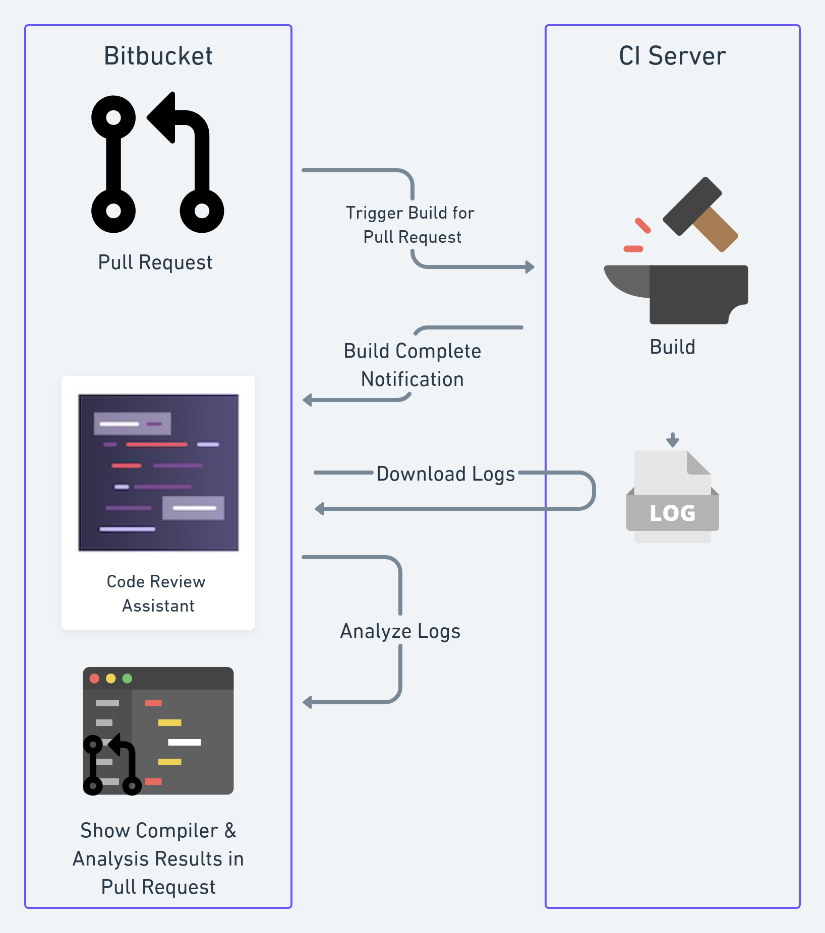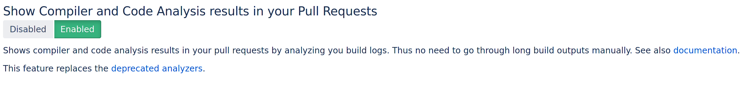 Code Review Assistant analyzes build logs and shows compiler and code analysis results right in the pull request. So the developers do not miss issues and improve the pull request before merging: