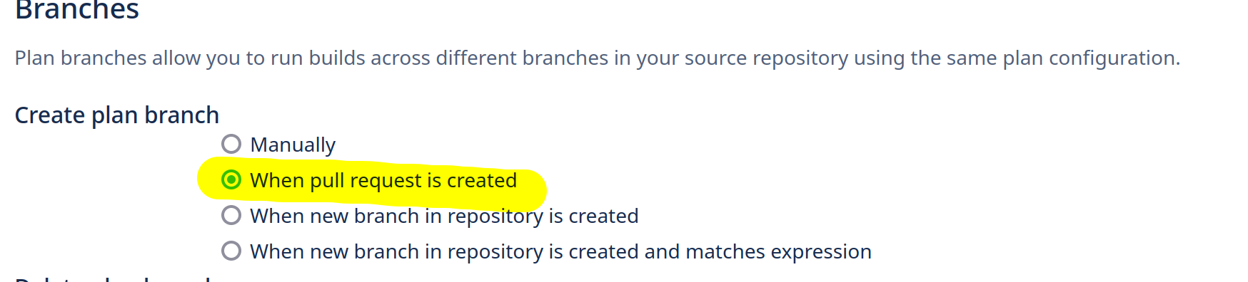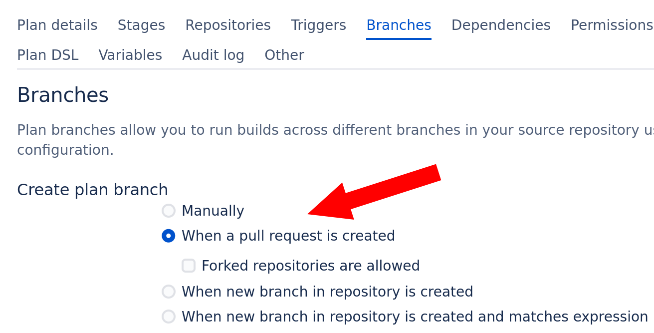 As an alternative, configure branch builds with Bamboo Specs: