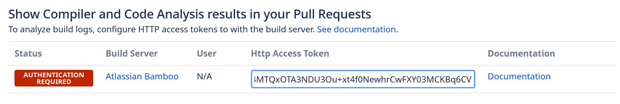 You must run your analyzer tools for every branch or pull request, to see analyzer results in pull requests. Enable branch builds in Bamboo like this: