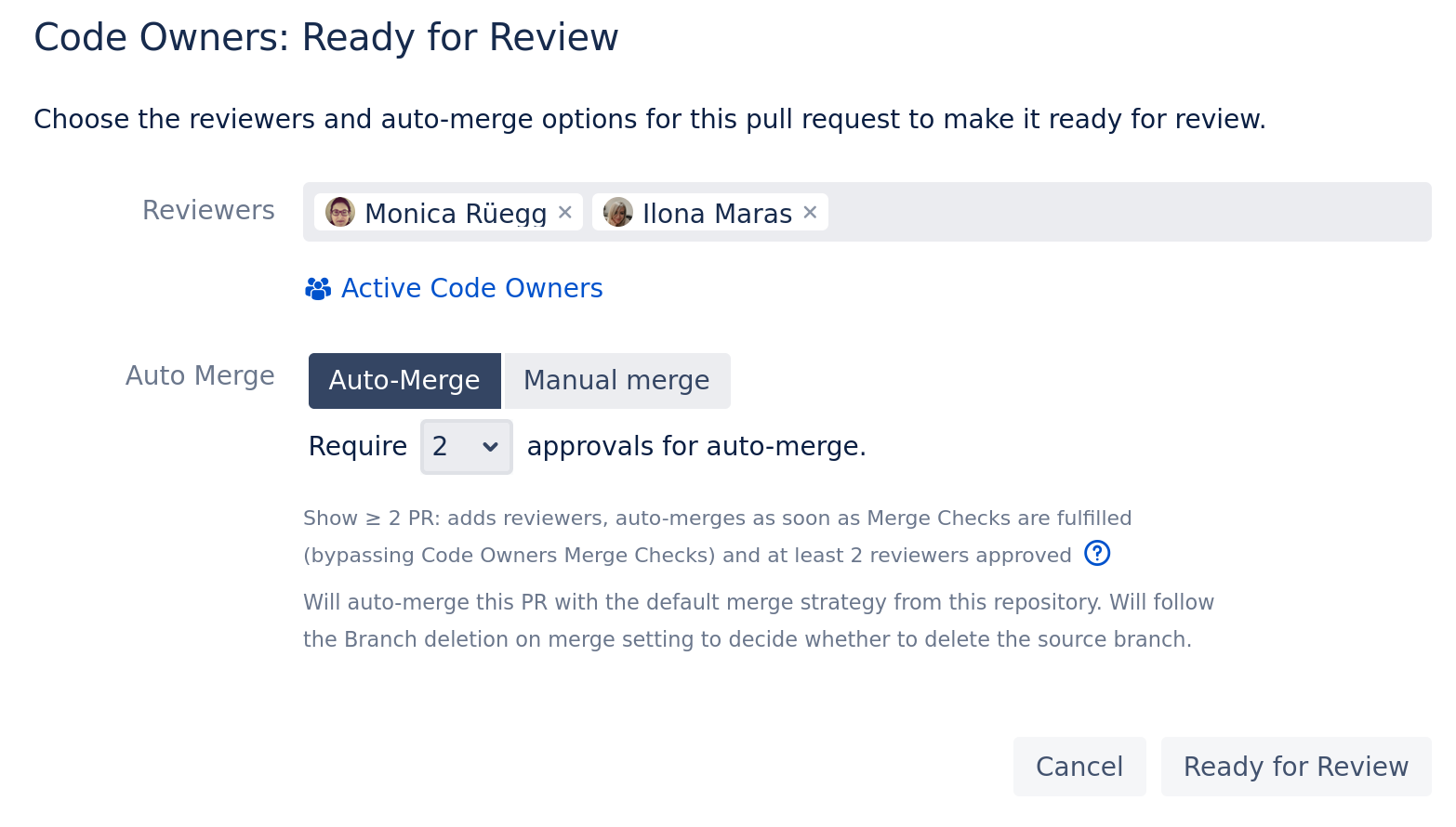Now, you can also use the Auto-Merge functionality in the process of marking a Draft pull request as “Ready for Review”, similar as if you would create a new pull request.
