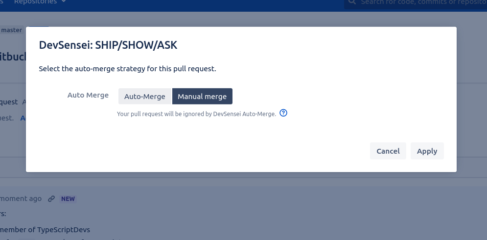 Integrated UI to change the DevSensei auto-merge Pull Request type