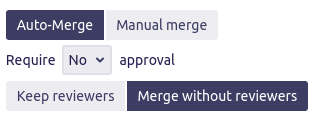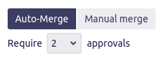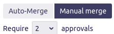 To initiate an [Ask>=n] pull request, the user must select Manual merge and ask to require a certain number of approvals via the dedicated drop-down.
