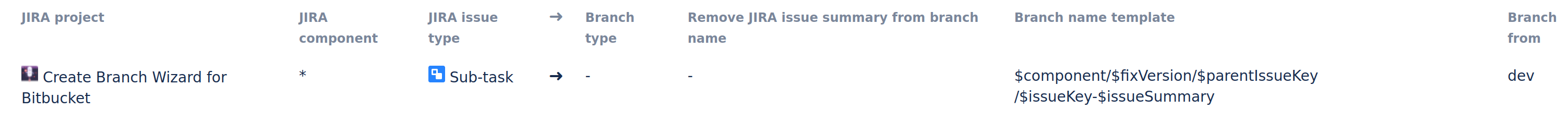 Allow custom branch names based on Jira values like version, component, parent issue etc.