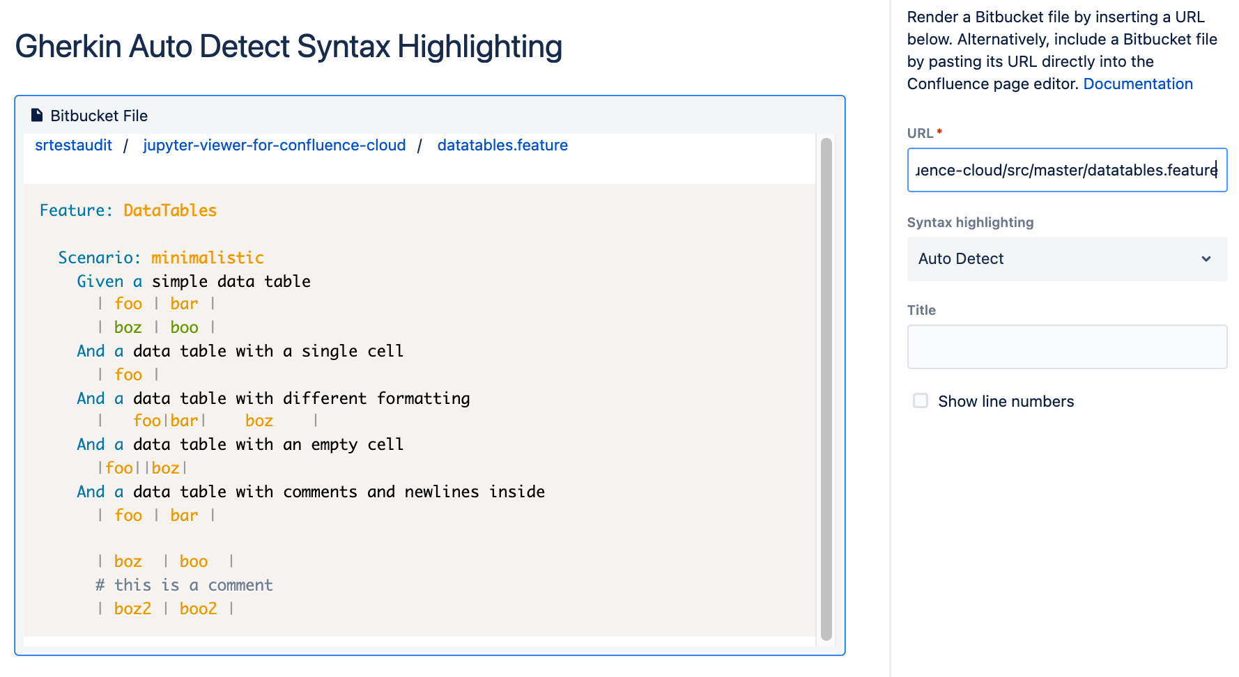 Gherkin syntax highlighting is now applied and rendered automatically.