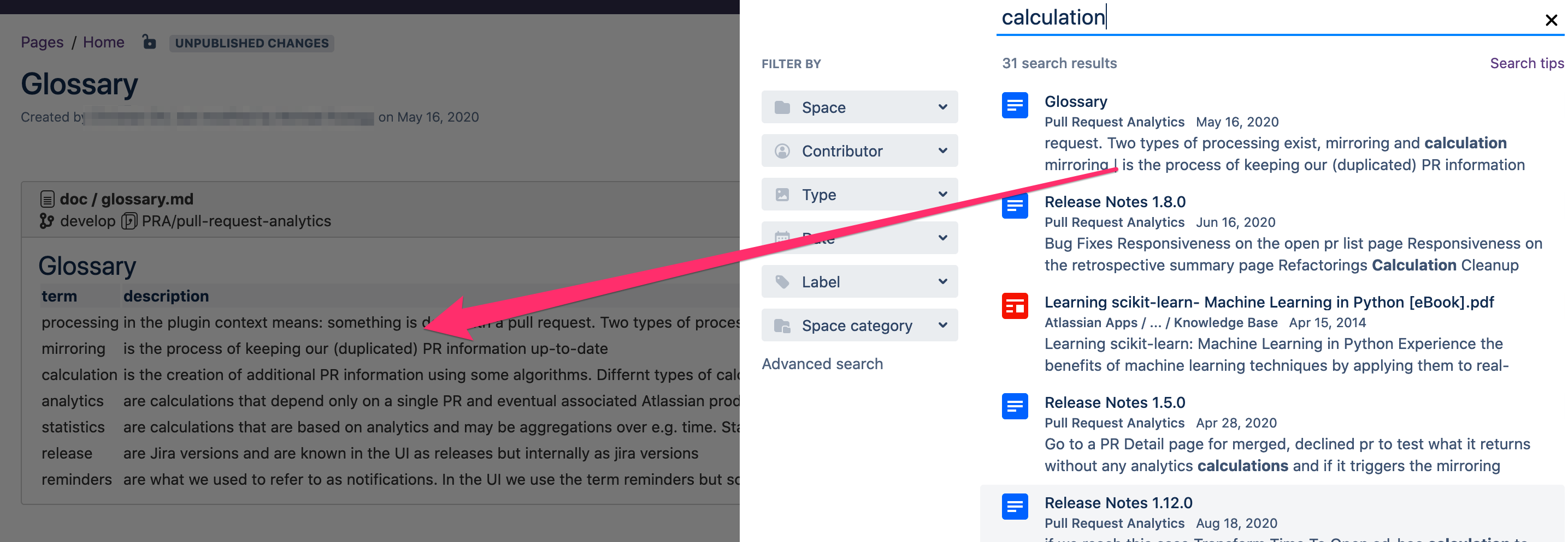 With this release, included Bitbucket files are now indexed and their content is available when searching in Confluence pages: