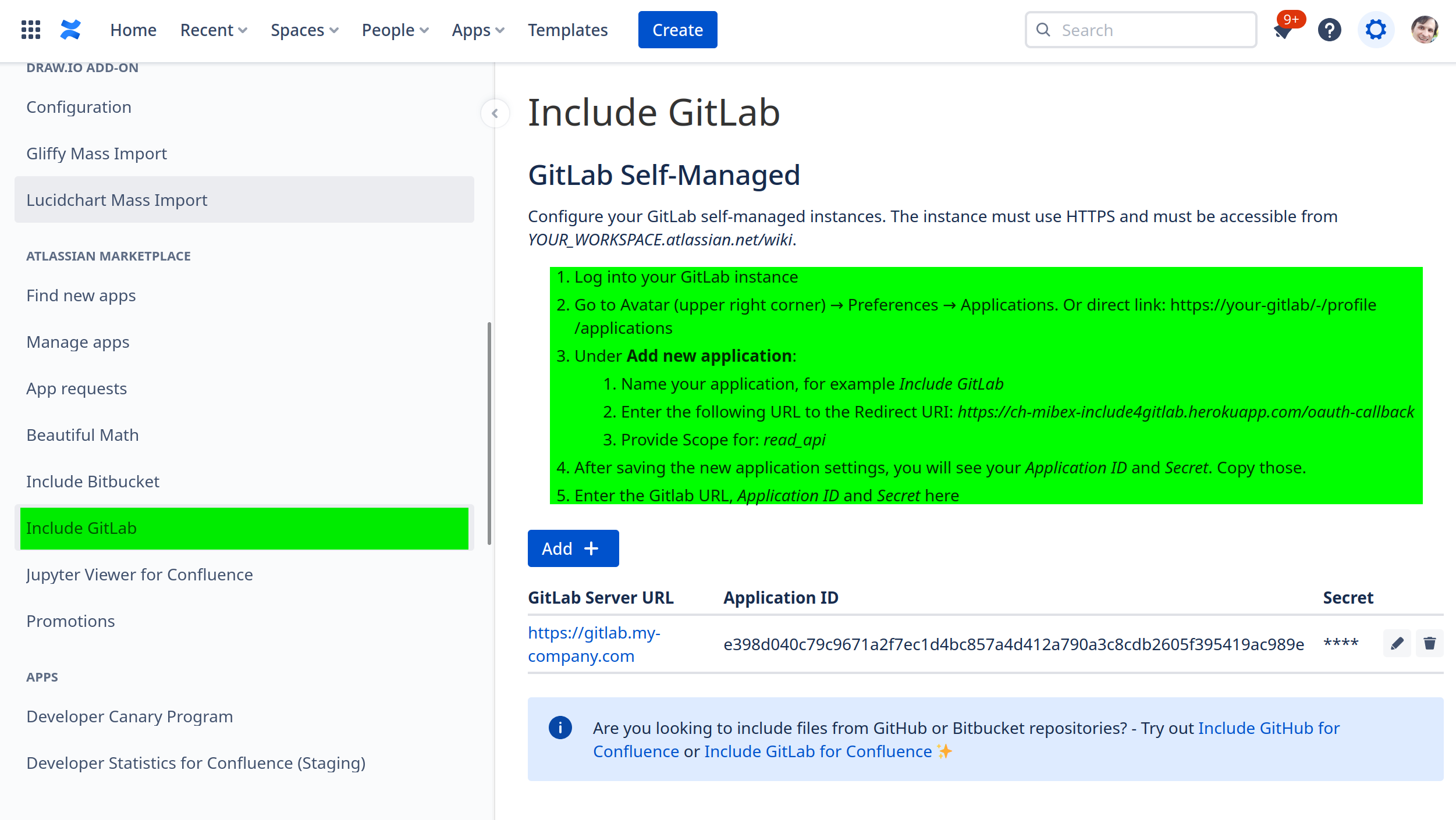 Including from GitLab self managed repositories is supported. The GitLab domain has to be accessible via HTTPS and has not be behind a firewall.