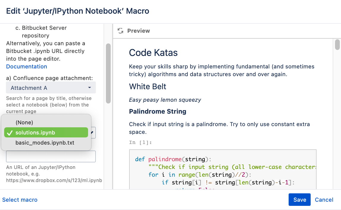 In a previous release, we added the ability to copy and paste Jupyter notebook URLs from Bitbucket; in this release, we have extended the functionality to include most other URLs as well. We have made it easier to include a notebook URL that will be automatically converted and displayed by the macro. This will make it even faster to get your notebook rendered in Confluence so you can move on to more important work.