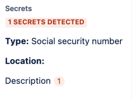 Effective immediately, you will begin to see a new field in your Jira issues that will display the secrets detected. You can hover over some of the elements in order to see more details about the secret.